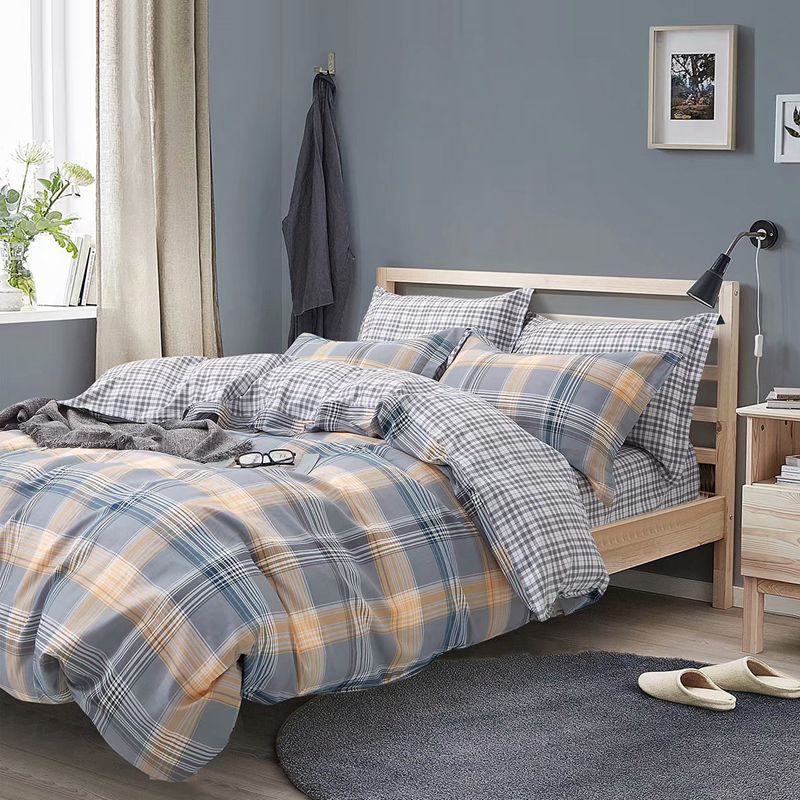 产品介绍:面料采用100%全棉活性印染,洗后不易脱色不变形、不起球,依然如新。被套采用AB版的设计风格,一套产品两种风格体验。