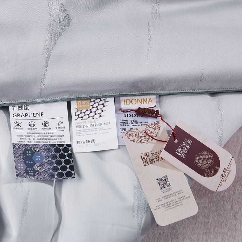 产品介绍:石墨烯特种复合纤维材料,具有远红外发热,持久抑菌防螨,吸湿透气,抗静电和传导清凉等特殊功能,莫代尔纤维集众家之所长,兼具柔,丝,凉的特性,让您纵享惬意的清凉夏夜。