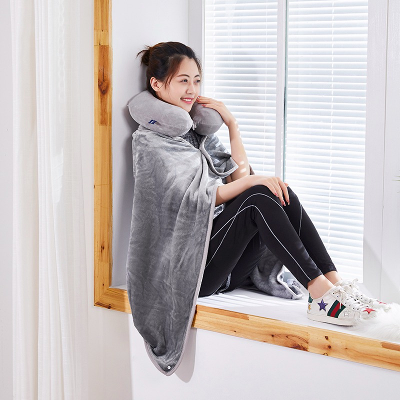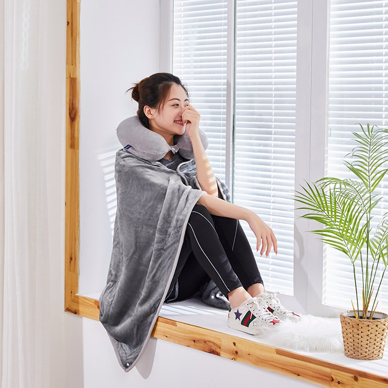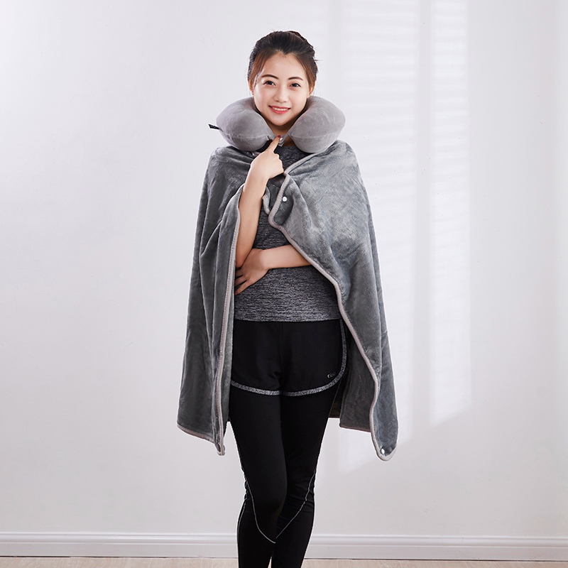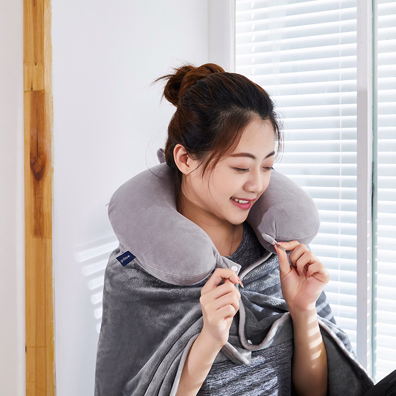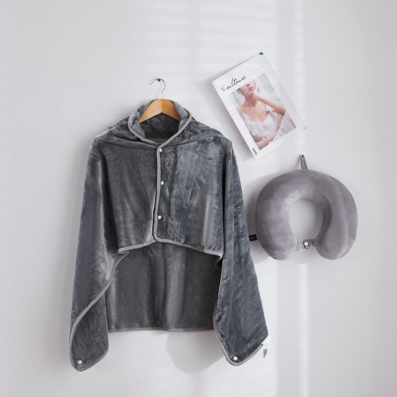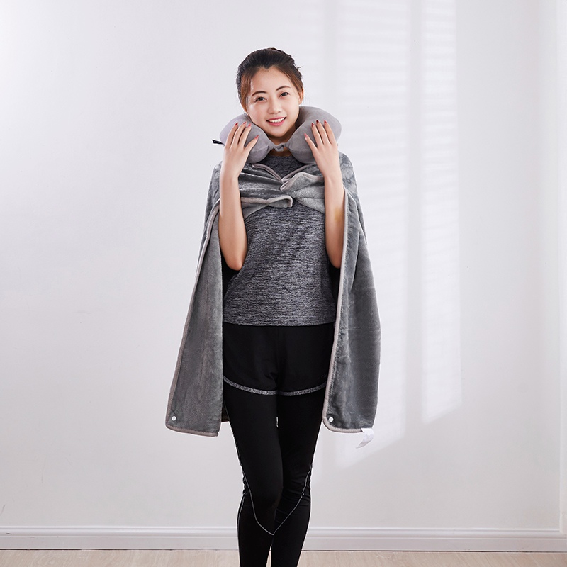 产品面料:U型枕:超柔针织+记忆棉 披肩毯:金貂绒