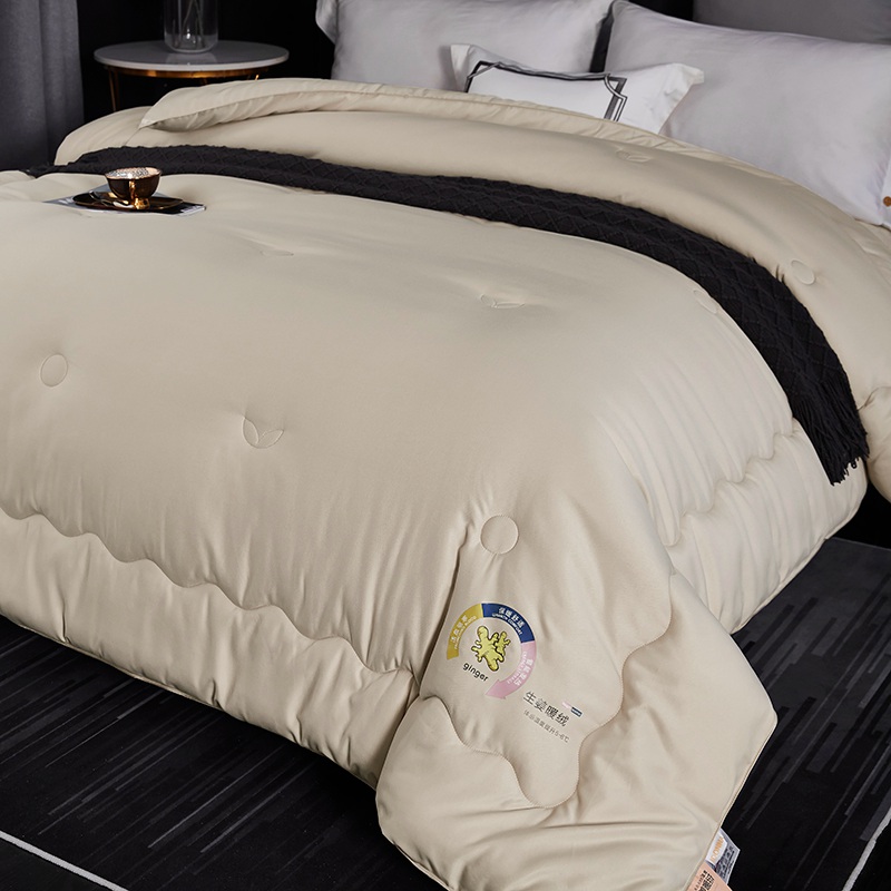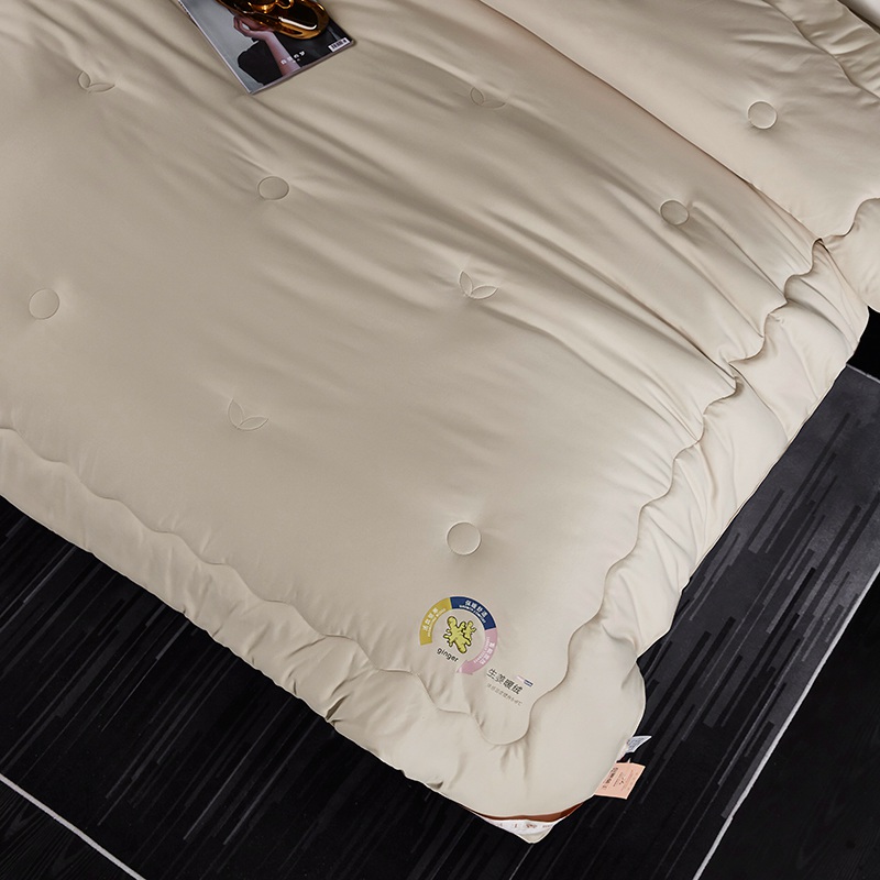 产品介绍:生姜暖绒是生姜提炼精华,融纺工艺,生姜具有驱寒,抗菌功效。被子盖上去是很轻盈的,还特别的柔软。就像整晚睡在云朵里一般。盖着还不会闷,透气性很赞!长期盖下来,我们的体寒也会得到改善。生姜还具有解毒杀菌的作用。