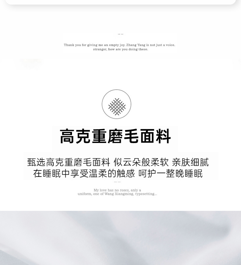 产品介绍:时尚风格与舒适亲肤保暖功能完美结合,打造出高端奢华的卧室新宠。百分百精选超细纤维精致而作。其制品,质地极其细腻柔软、亲肤,令人倍感温暖。