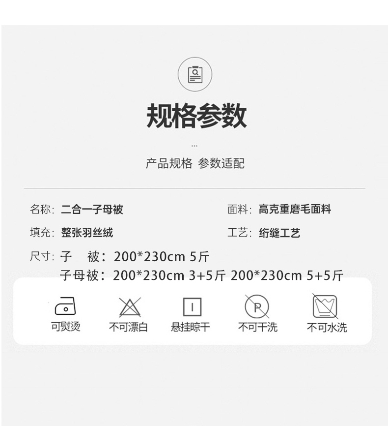 产品规格:200*230CM/1500g+2500g