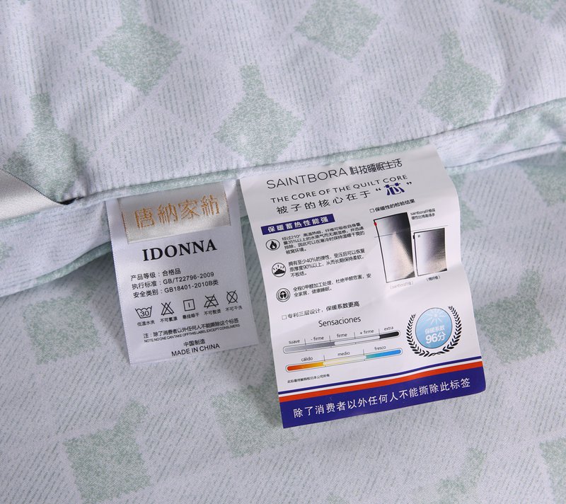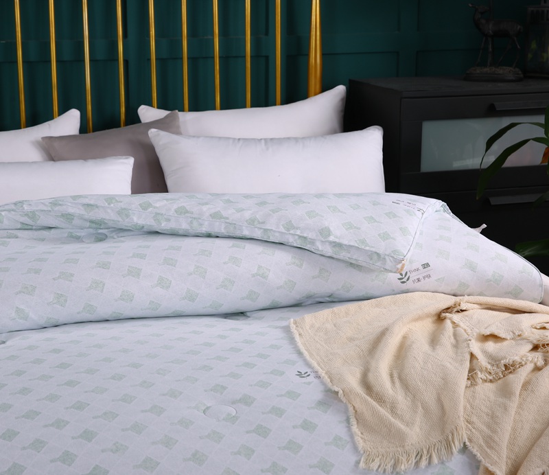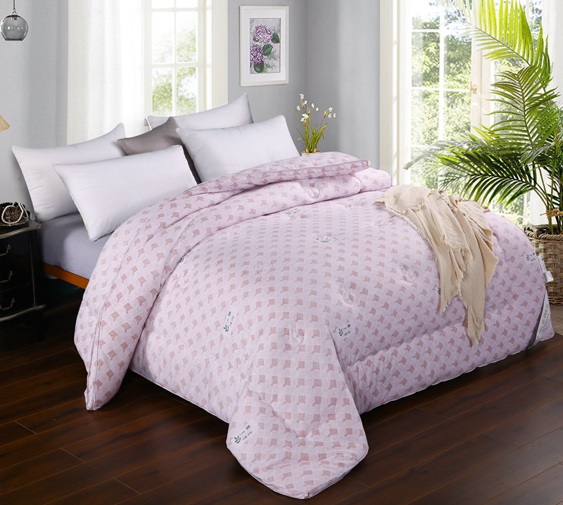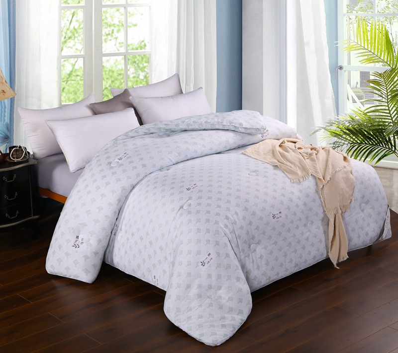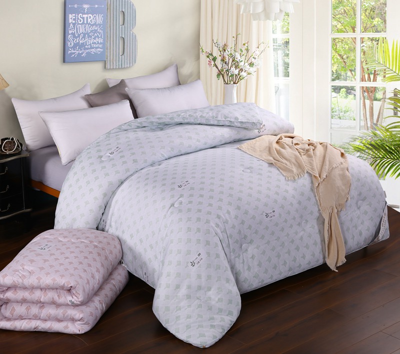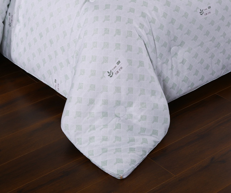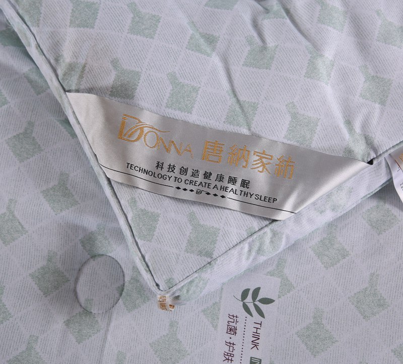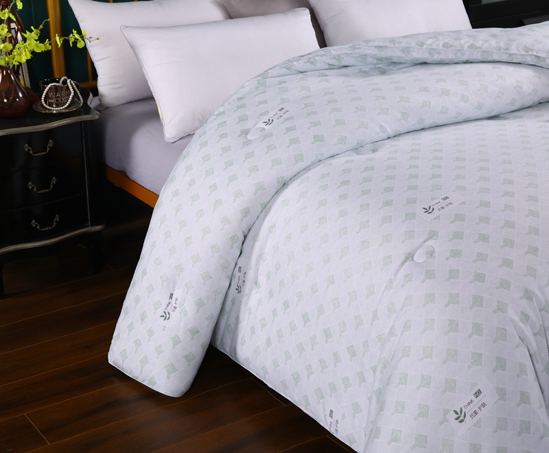 产品介绍:本品面料采用聚酯纤维、竹炭纤维、大豆蛋白复合纤维混合纺织而成,具有良好的亲肤性、透气保暖,使被子还具有抗菌作用,能有效防止螨虫滋生。