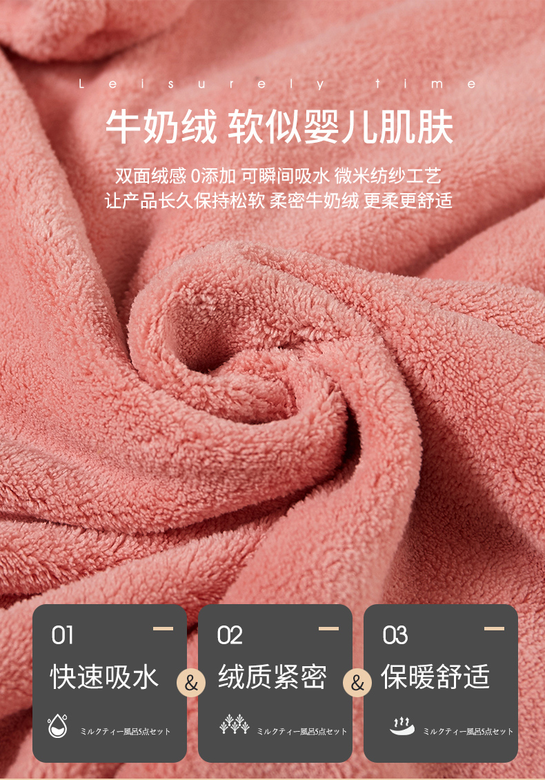产品介绍:牛奶绒软似婴儿肌肤,双面绒感,零有害物添加,可瞬间吸水,微米纺纱工艺,让产品长久保存松软,柔密牛奶绒更柔更舒适。